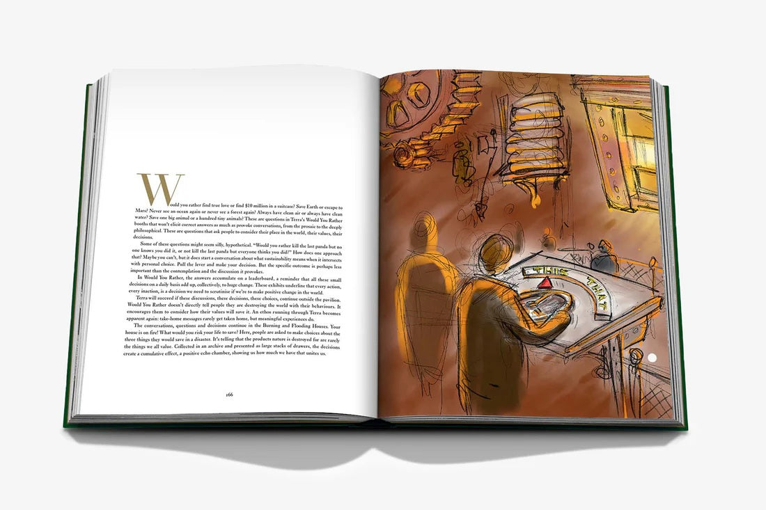 Terra-The Sustainability Pavilion is a built environment with sustainability embedded in its DNA, telling the story of our relationship with nature, our obsession with consumerism and how we can change our everyday choices to reduce our environmental impact. Global authorities on sustainability collaborated with Expo 2020 and Grimshaw Architects, to make a unique experience and awe-inspiring building. Visitors will move through immersive spaces while experiencing the latest developments in behavioral psychology and storytelling techniques. Terra-The Sustainability Pavilion seeks to nurture our innate connection with the environment and inspire visitors—and readers—to live a more sustainable life.