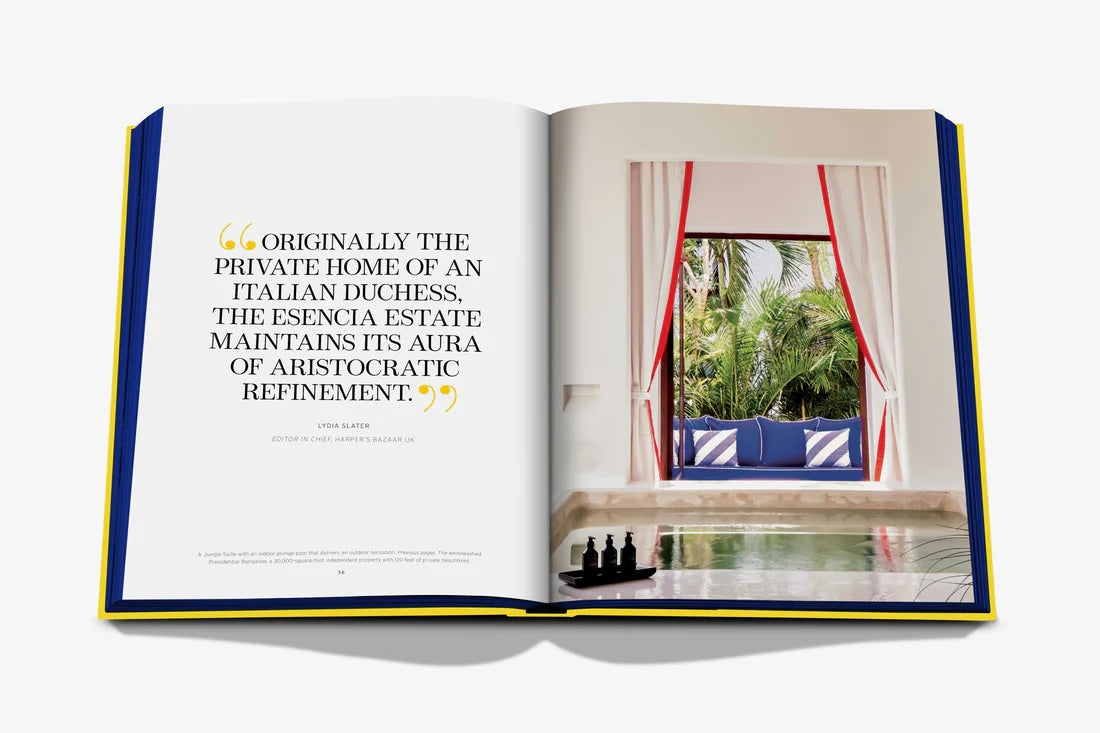 Hotel Esencia, one of the world's top 25 hotels, sits on a 50-acre property along Mexico's Riviera Maya between Tulum and Playa del Carmen. This estate features a pristine white-sand beach and a lush backdrop of jungle. Known for its understated luxury, the hotel combines white concrete with bright primary colors, filled with unique designer furniture like Charlotte Perriand chairs and Picasso ceramics. Kevin Wendle, the entertainment mogul who owns the hotel, infuses it with personal style and attention to detail. Authored by Melinda Stevens, the hotel’s book showcases its serene beauty, sea turtle nesting grounds, and vibrant wildlife. Guests can enjoy the 12,000-square-foot mansion with a speakeasy, Beefbar Esencia, and what might be Mexico's best margaritas. Hotel Esencia’s signature hospitality is defined by surprises and unforgettable experiences, ensuring guests are constantly enchanted and inspired.
